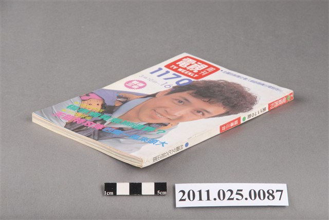 1.本物件為電視周刊TTV WEEKLY第1170期,封面照片為明星董瑋。由物件正面可見「電視周刊TTV WEEKLY 第1170期」、「3月10日-3月16日」字樣。其目錄章節可見包括「特別報導」(如:天龍特攻隊 四龍一鳳來頭大)、「電視論壇」(如:充滿繁榮與挑戰的廣告事業)、「三台節目焦點」(如:五燈獎 延長時間增添精彩新內容)、「綜合專欄」(如:看電視談電視 為國內武俠劇喝采)、「人物特寫」(如:于珊、蘇芮雙雙雙喜臨門)、「彩色之頁」(如:明星周曆 石修客串螢光幕)。該周刊內頁亦可見刊物發行所為台視文化事業公司,地址為臺北市八德路三段二號)。