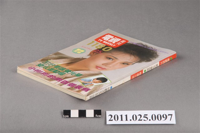 1.本物件為電視周刊TTV WEEKLY第1180期,封面照片為明星江東華。由物件正面可見「電視周刊TTV WEEKLY 第1180期」、「5月19日-5月25日」字樣。其目錄章節可見包括「特別報導」(如:三台要讓螢光幕變成運動場)、「電視論壇」(如:長期灌溉花開燦爛)、「三台節目焦點」(如:台視推出科幻影集勝利決戰)、「綜合專欄」(如:看電視談電視 公共電視要更好)、「人物特寫」(如:小彬彬的兩百個表情)、「彩色之頁」(如:甄秀珍準備露一手)。該周刊內頁亦可見刊物發行所為台視文化事業公司,地址為臺北市八德路三段二號)。
