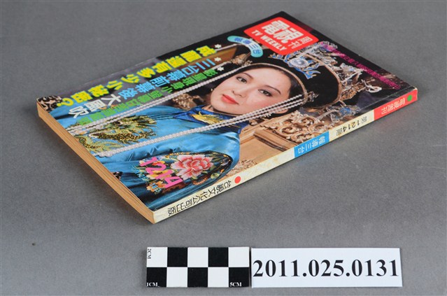 1.本物件為電視周刊TTV WEEKLY第1214期,封面照片為明星胡茵夢。由物件正面可見「電視周刊TTV WEEKLY 第1214期」、「元月12日-元月18日」字樣。其目錄章節可見包括「影視焦點」(如:三台幕前幕後將見大風吹)、「明星熱線」(如:胡茵夢巧扮嫦娥先奔月)、「節目快報」(如:台視慈禧外傳大製作)、「綜合專欄」(如:電視論壇)。該周刊內頁亦可見刊物發行所為台視文化事業公司,地址為臺北市八德路三段二號)。