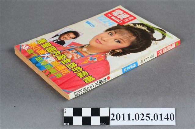 1.本物件為電視周刊TTV WEEKLY第1224期,封面照片為明星許秀年。由物件正面可見「電視周刊TTV WEEKLY 第1224期」、「3月23日-3月29日」字樣。其目錄章節可見包括「影視焦點」(如:港星國內淘金熱的震撼)、「明星熱線」(如:東瀛歸來馬之秦有異動的跡象)、「節目快報」(如:公視推出首部戲劇節目 成長與衝突)、「綜合專欄」(如:電視論壇)。該周刊內頁亦可見刊物發行所為台視文化事業公司,地址為臺北市八德路三段二號)。
