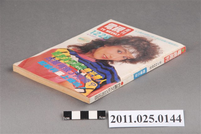 1.本物件為電視周刊TTV WEEKLY第1228期,封面照片為明星劉雪華。由物件正面可見「電視周刊TTV WEEKLY 第1228期」、「4月20日-4月26日」字樣。其目錄章節可見包括「影視焦點」(如:細數圈內的燈光美人)、「明星熱線」(如:夏雨想與紅虹同台演粵劇)、「節目快報」(如:風雲人物力爭上游創佳績)、「綜合專欄」(如:電視論壇)。該周刊內頁亦可見刊物發行所為台視文化事業公司,地址為臺北市八德路三段二號)。