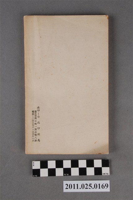 本件《票據法規要覽》的封面有黑字直書「中華民國四十九年五月」、「票據法規要覽」、「台灣第一商業銀行印贈」等字,背面左下角有「承印:台北印刷局」、「臺北市漢口街一段卅巷八號」、「電話:二四三五八˙三三八一八」等字,內容包括 「票據法」、「票據法施行法」、「票據法判例解釋」、「其他票據規章」等,外觀老舊,有風漬痕跡,保存完整。