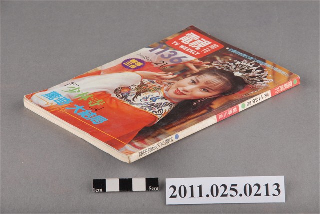 1.本物件為電視周刊TTV WEEKLY第1136期,封面照片為明星魏秋樺。由物件正面可見「電視周刊TTV WEEKLY 第1136期」、「7月15日-7月21日」字樣。其目錄章節可見包括「特別報導」(如:台視新聞部招考記者)、「電視論壇」(如:何不發起陪孩子看電視運動)、「三台節目焦點」(如:最難忘的人真相大白)、「綜合專欄」(如:看電視談電視 向台視歌仔戲致敬)、「人物專訪」(如:柯玉枝不再做逃兵)、「彩色之頁」(如:明星周曆 鳳飛飛和鍾楚紅)。該周刊內頁亦可見刊物發行所為台視文化事業公司,地址為臺北市八德路三段二號)。