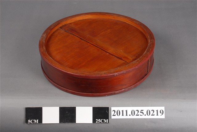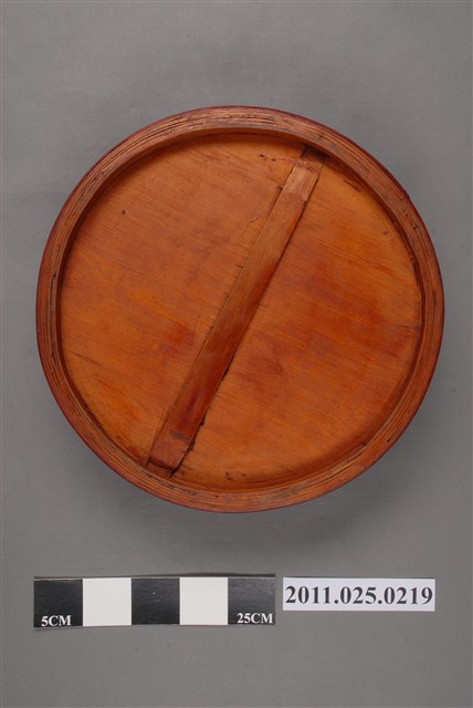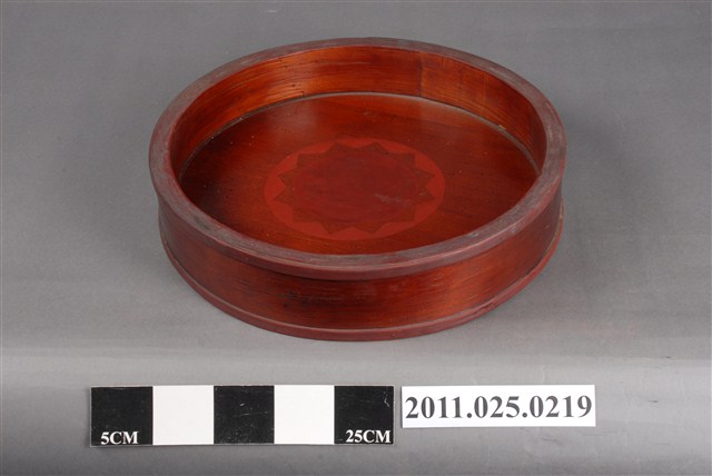 1.此件文物為鄭玉記時期便開始使用的祭祀用果盤。本件圓形盛盤,排底採拼接方式,另加上一根木條強化其承重力,盤內有一圖圈內有星紋裝飾。