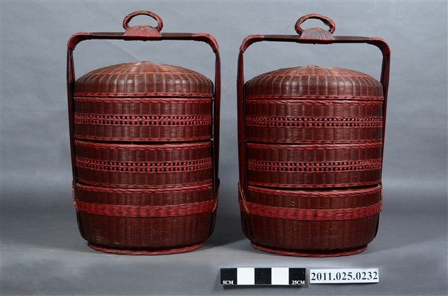 2011.025.0232 三層朱漆竹編對籃組