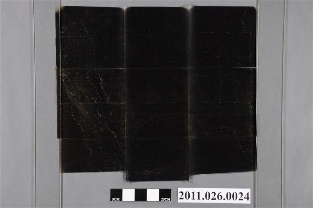 1. 本物件為以臺灣花蓮光復玉里一帶圖為主題之物件,其正面為黑色調外觀呈現方形,無法辨識膠片圖樣;膠片背面為黑色調,呈現方形之外觀,左方有部分可辨識紋路。2. 此圖總編輯吳信政教授為師大地理系退休教授,具有地圖學、地圖設計、遙測學等專長。
