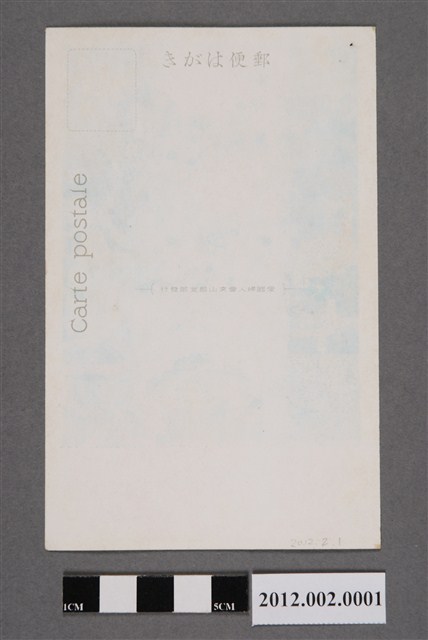 1.本物件為文山郡鳥瞰圖。正面為文山郡鳥瞰圖,採彩色直式印刷。圖畫中標出日本東京、門司港及臺灣基隆、臺北、淡水、萬華等地與文山郡內重要據點、名勝、機關之相關位置,其中,新店碧潭、指南宮仙公廟、烏來溫泉等名勝以紅底黑字直式方框標示;臺灣神社、深坑庄役場、新店庄役場、小學校、公學校、小粗坑發電所、三井製茶工場、公共浴場、烏來神社、烏來瀧(按:烏來瀑布)、ウライ(按:烏來之日文)蕃社等地點以白底黑字直式方框標示;東京、門司、淡水、淡水河、景尾(按:今景美)、木柵等地以白底黑字直式橢圓框標示;基隆、臺北、萬華、新店等地以藍底白字直式橢圓框標示;文山郡役所以藍底白字方框標示。紅線為鐵道路線,土黃色為道路路線。圖畫框外右下方郵右而左印有「景勝之文山郡鳥瞰圖」字樣;左下方印有「吉田初三郎畫伯筆」字樣;框外左側由上而下印有「昭和十年八月十日基隆要塞司令部檢閱濟」字樣。背面為明信片書寫面,以灰色印刷。中央畫1豎線,豎線中央缺口處呈90度由右而左書寫「(愛國婦人會文山郡支部發行)」等字樣;豎線上方左右對稱橫寫「Carte postale」之明信片法文;明信片右上角繪有虛線方形框;明信片最右側以呈90度由右而左書寫「郵便はがき」,為日文明信片之意。