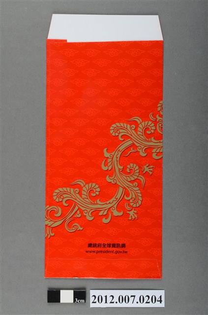 一組五個,紅包袋正面印有「壬辰 龍騰虎躍 福滿寶島 馬英九蕭萬長同賀」,背面印上「總統府全球資訊網www.president.gov.tw」,應為總統府發送給民眾。