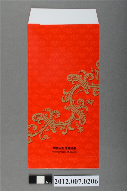 一組五個,紅包袋正面印有「壬辰 龍騰虎躍 福滿寶島 馬英九蕭萬長同賀」,背面印上「總統府全球資訊網www.president.gov.tw」,應為總統府發送給民眾。