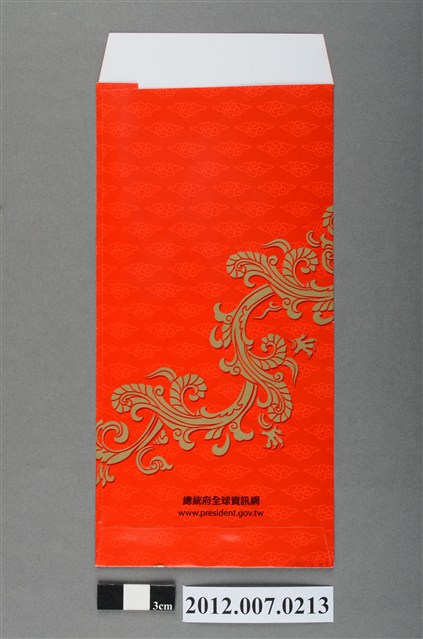 一組五個,紅包袋正面印有「壬辰 龍騰虎躍 福滿寶島 馬英九蕭萬長同賀」,背面印上「總統府全球資訊網www.president.gov.tw」,應為總統府發送給民眾。