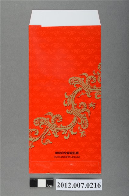 一組五個,紅包袋正面印有「壬辰 龍騰虎躍 福滿寶島 馬英九蕭萬長同賀」,背面印上「總統府全球資訊網www.president.gov.tw」,應為總統府發送給民眾。