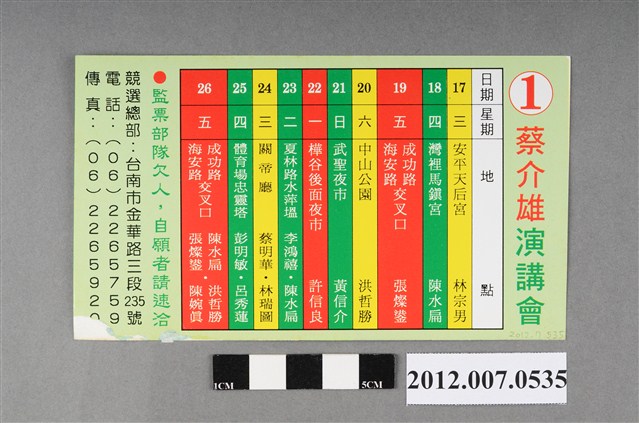 ::: 臺南市市長候選人蔡介雄競選文宣
