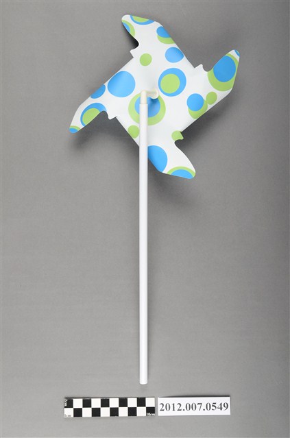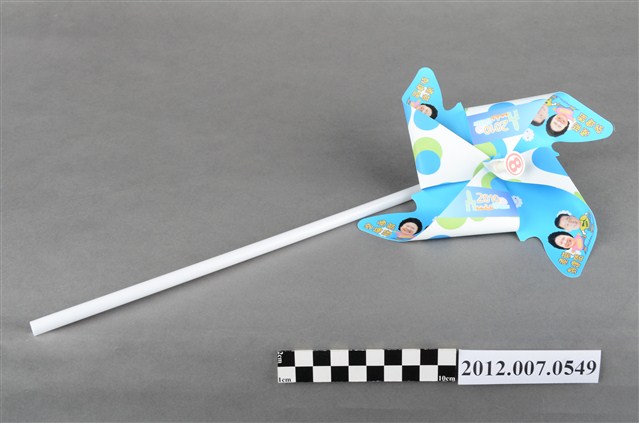 此物件為選舉宣傳品,為郭建盟於2010年參選高雄市議員期間所製作的宣傳物,形式為一紙風車,其主要部件由印有候選人形象、訊息的紙片折疊而成。 本件所提及的候選人郭建盟,為臺灣知名歌手郭金發之子曾任高雄市政府市長辦公室副主任、高雄市民政局主任秘書,並於2010、2014年由民主進步黨提名,兩度當選高雄市議員。 2010年11月27日舉辦的中華民國直轄市市長暨市議員選舉、中華民國直轄市里長選舉,實施範圍包含當時新形成的5個直轄市:臺北市、新北市、臺中市、臺南市及高雄市。是次選舉,對於臺北市之外的其餘四者而言,皆為改制或區域合併後的首次地方公職選舉,大眾媒體普遍以「五都選舉」稱之,此次五都選舉的結果為:臺北市:郝龍斌、新北市:朱立倫、臺中市:胡志強、臺南市:賴清德、高雄市:陳菊,其中臺北、新北、臺中市長由中國國民黨取得,臺南、高雄市長由民主進步黨取得。