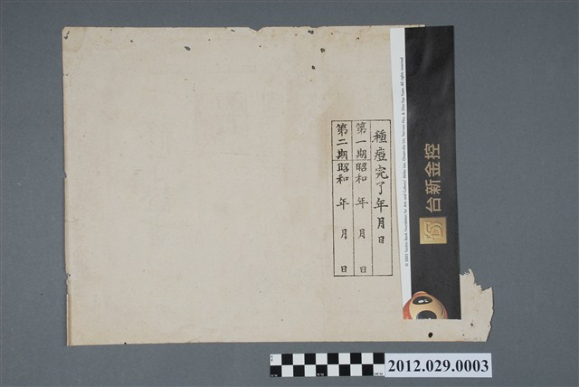 本件為昭和20年(1945)3月20日,高雄州公立仕隆國民學校(今高雄市橋頭區仕隆國民小學)校長濱島弘哲給戴氏月娥之修了證書,證明其已修畢國民學校初等科之課程。本件蓋有「仕隆國民學校印」、「仕隆國民學校校長印」。