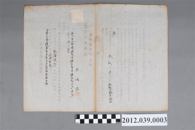 1.貼有印花,為制式契約書,共計八條。期限為1921年(大正10年)10月1日至樟樹及相思樹植栽日止,如大寶農林要進行造林或他用,需於6個月前告知承租戶。要種植何種作物需告知大寶農林部。