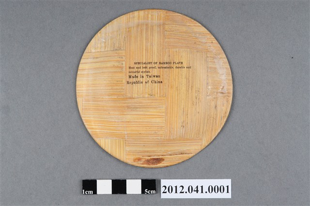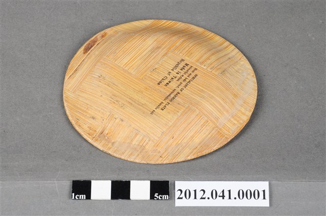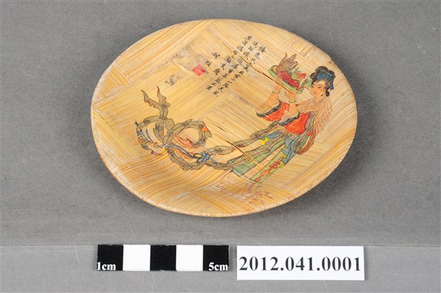 根據捐贈者描述該件係由其父親羅賢榮所收藏,使用的年代約在民國40~50年代之間,上面的花紋是貼皮而非彩繪。此物件應該為塑膠物品尚未量產,一般市街小民所使用,由於輕便、耐摔等特性,一般家庭均有使用相關的產品,作為裝盛水果、乾果使用。