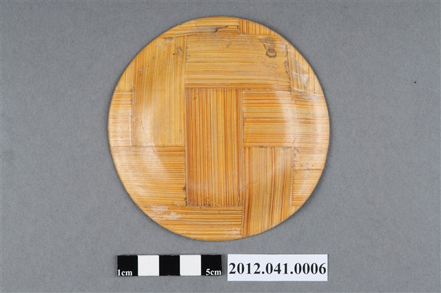 根據捐贈者描述該件係由其父親羅賢榮所收藏,使用的年代約在民國40~50年代之間,上面的花紋是貼皮而非彩繪。此物件應該為塑膠物品尚未量產,一般市街小民所使用,由於輕便、耐摔等特性,一般家庭均有使用相關的產品,作為裝盛水果、乾果使用。
