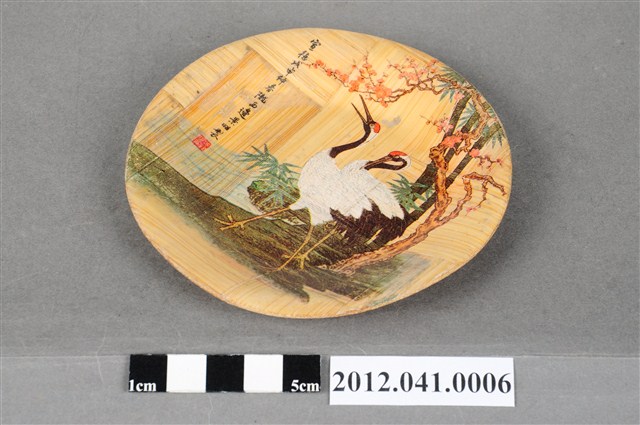白鶴圖之竹製盤