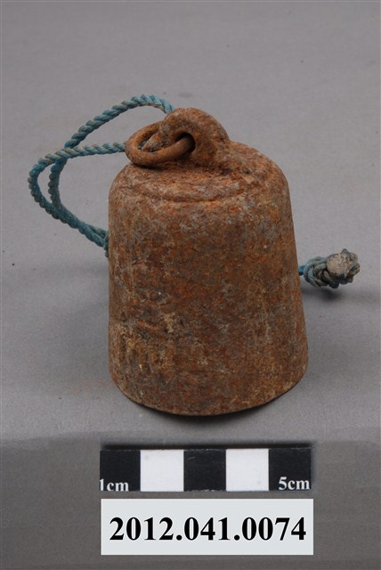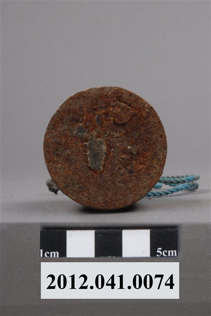 秤錘,須搭配秤使用,藉槓桿原理得出物品重量。本件收藏者羅嗣奇先生收自早期歸仁鄉看東村村民家中。看東村村內有龍蝦潭、十三窯等遺跡,並為舊社街所在。具有地名的指標性文物。