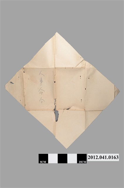 本件應為捐贈者父親(羅賢榮)持有的公文封套;封面手寫「人事命令」。