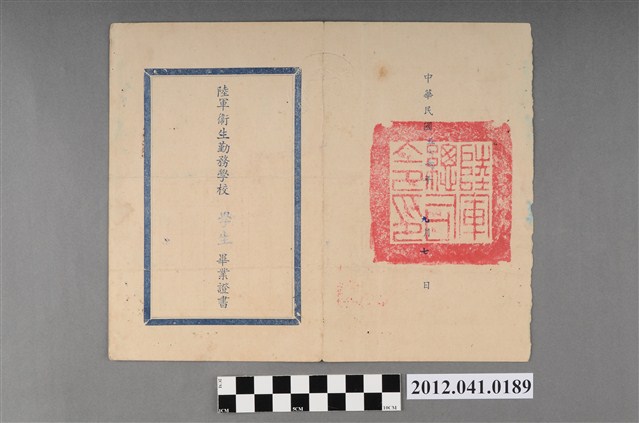 本件為捐贈者父親(羅賢榮)個人履歷、證書;陸軍衛生勤務學校第十八期軍醫科專修學生班畢業證書。