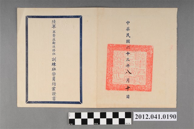 民國63年陸軍第三期軍醫技術進修班訓練班學員結業證書