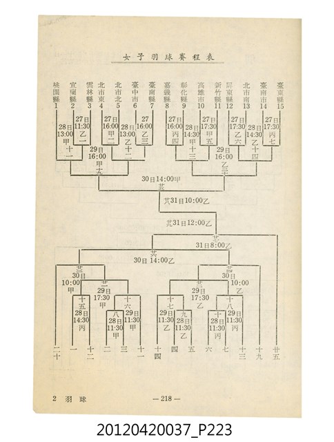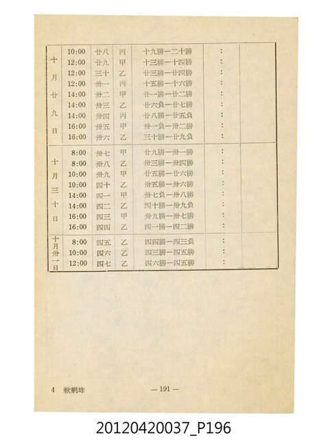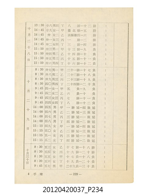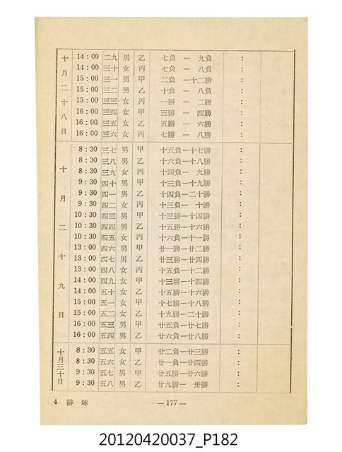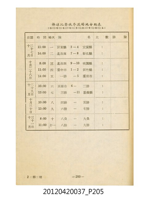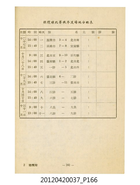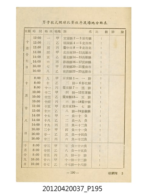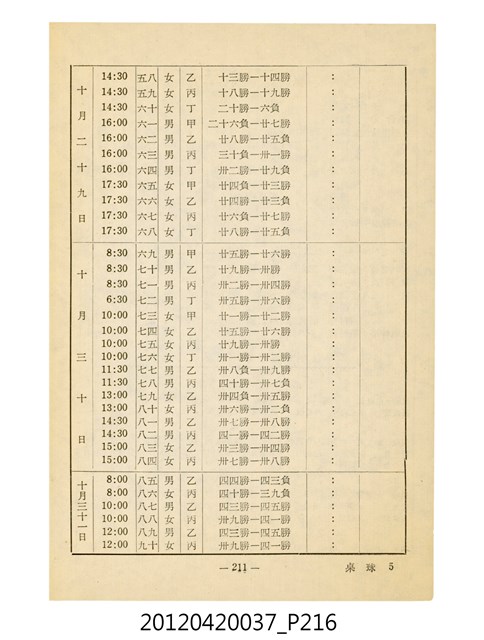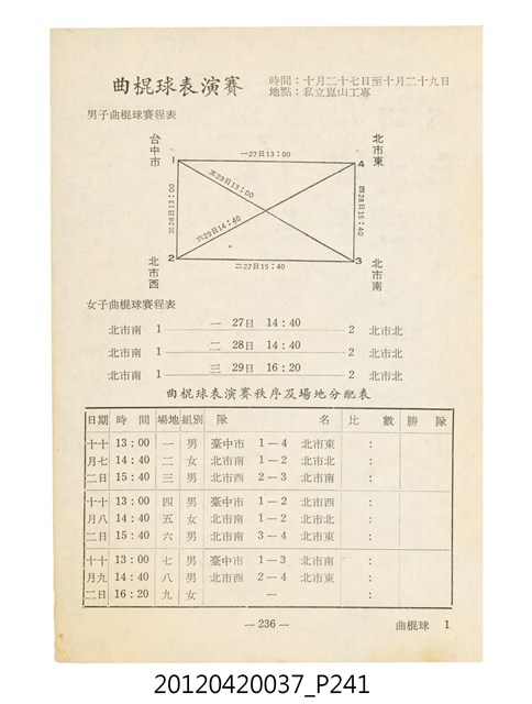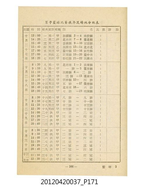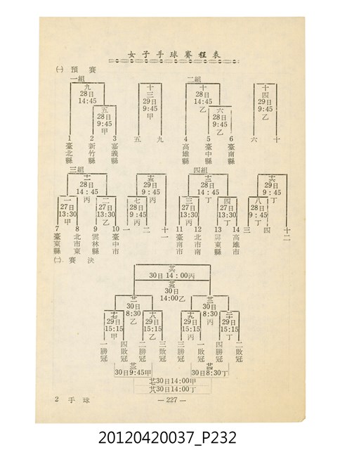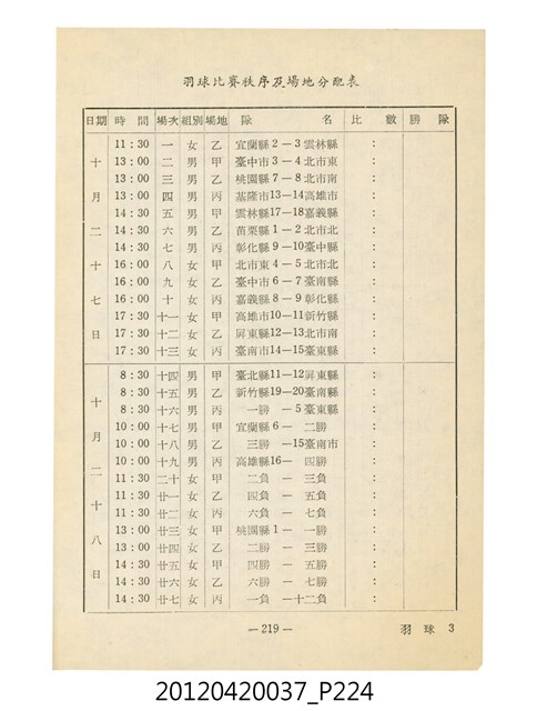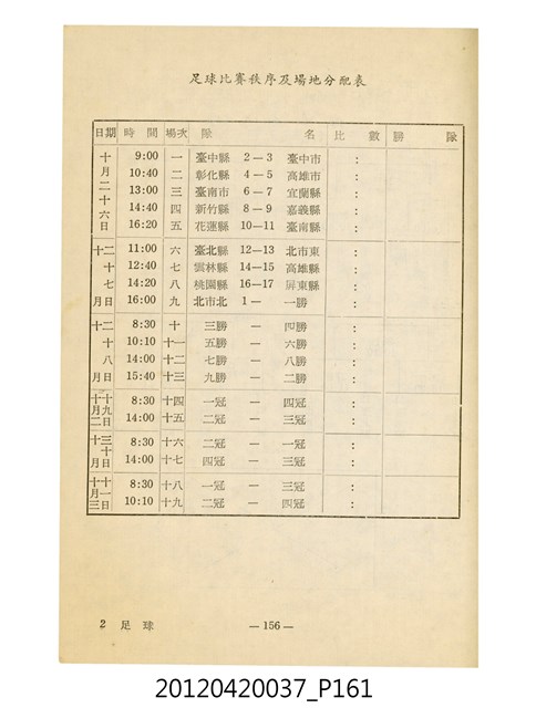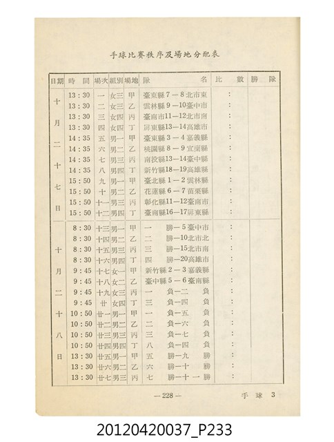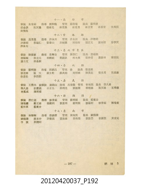 民國六十三年開始全省運動會改為臺灣區運動會,每年舉辦自民國六十三年至民國八十七年總共舉辦25屆。中華民國六十七年台灣區運動會於民國六十七年十月二十六日至十月三十一日在臺南市舉行,秩序冊封面設計以黃色為底中間以21個綠色方框,方框內有運動人形代表21項比賽項目,搭配銀色台灣區運圖騰,封底為運動會各項比賽場地與日程表。秩序冊記載開幕典禮與閉幕典禮儀式與表演安排以及裁判、計時、記錄人員及參賽者組成名單和號碼,為賽事舉行的主要依據包括比賽規約、賽制、賽事項目的日程和分組表,並提供交通規劃、動線與地點安排等資訊。
