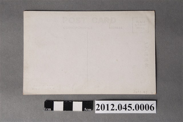 1.多色印刷明信片,影像內容為日月潭特有的水上風光,一名穿傳統服飾的邵族女子站在獨木舟上,左方背後有一艘船屋,前方架著四手網。 2.正面影像滿版印刷,下方印有說明文字「日月潭、四ツ手網と丸木船」。背面則印有「郵便はがき、POST CARD、CORRESPONDENCE、ADDRESS」,及郵票黏貼方框內有「PLACE STAMP HERE」等字。 3.本件與館藏號2012.045.0067.0009相同。
