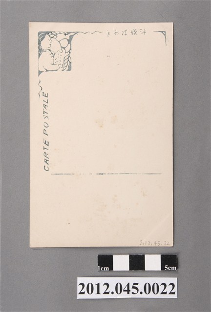 1.本物件為嘉義北回歸線標的繪圖明信片。正面為北回歸線標繪圖,採直式彩色印刷。北回歸線標立於圖畫中央偏左處,碑身上方為天球,天球上端有方位指標。圖畫右上處由右而左直書「東嘉義广(按:廳)下水堀頭溫帶熱帶境界標」之說明;左下方有「小竹」之署名。右上角標題處覆蓋「大正博覽會臺灣館紀念章」,紀念章是由正三角形和倒三角形構成方形,兩三角形間留有空隙,上面的正三角形依序在右邊、頂點、左邊印有「大正博覽會」字樣,中間印「紀」字;下面的倒三角形中間印「念」字,左邊、頂點、右邊依序倒寫「臺灣館」字樣。背面為明信片書寫面,中央偏左處繪製豎線,豎線中央為線包圍的小圓圈;中央上方橫印「CARTE POSTALE」之明信片法文;右上角印有黑色方框,方框內以垂直90度繪製女子圖案;最右側由右而左垂直90度以草書印上「郵便はがき」,為日文明信片之意。2.圖中所繪為嘉義北回歸線第一代地標,下水堀為今水上鄉的舊稱。該標誌為1908年以慶祝縱貫鐵路通車名義興建的,是全世界最早興建的北回歸線地標。1917年紀念碑毀於颱風,1921年原地重建。後來又有幾次的修築。3.1914年,日本在東京上野公園舉辦大正博覽會,會場內設置臺灣館,推廣臺灣物產、名勝及介紹臺灣原住民。