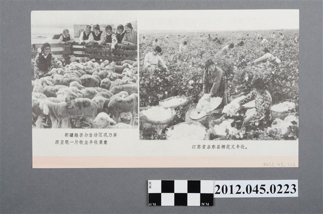 橫式單色雙面簡體字印刷。所謂「王張江姚反黨集團」即所謂四人幫,1976年9月毛澤東過世後,10月6日四人幫分別遭到拘禁迫害,公眾媒體更全面性地批評四人幫,這張傳單主要是刊登新疆、江蘇等各地農村豐收成果,也在標題中特別加入「打倒王張江姚反黨集團」的標題。