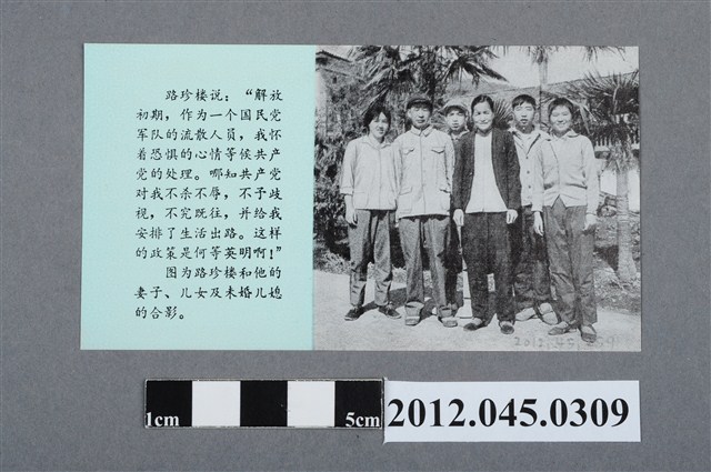 此物件為政治宣傳單,彩色雙面印刷,標題為「脫離蔣幫前途光明」,簡介中華人民共和國雲南省騰衝縣城關醫院第二門診部主任路珍樓,他原是國民黨軍醫,在對日抗戰勝利後不願投入國共戰爭,故脫離國民黨轉投中共。此件為1970年代中華人民共和國針對臺灣所使用之政戰文宣,目的在拉近臺灣民眾對於「祖國大陸」的認同感,並拉攏臺灣人民。 中國共產黨主政的中華人民共和國對外宣傳每個時期都有不同的策略與政策,建國初期,中共對臺灣的政治宣傳以「武力解放臺灣」為主軸,至1954年第一次臺海危機之後,美國與中華民國簽訂「中美共同防禦條約」,中共宣傳政策因而轉以「和平解放臺灣」為主。代表性的做法是使用廣播、心戰傳單、報紙等媒介向臺灣散佈宣傳訊息,更於1958年在福建建立前線電台《海峽之聲》。 到了1970年代,美國與中共關係改善,除持續進行空飄傳單以及廣播外,更將工作目標轉向美國,鼓吹「中國人自己解決臺灣問題」,要求美軍自臺灣撤軍,並且在「釣魚台事件」中,爭取留學生以及華裔學者的認同。在鄧小平時期,中共則將宣傳主軸從「解放臺灣」轉為「和平統一」,並公開發表〈告臺灣同胞書〉以及〈關於停止砲擊大、小金門等島嶼的聲明〉,甚至發表「和平統一,一國兩制」之說,營照兩岸和平的氛圍。