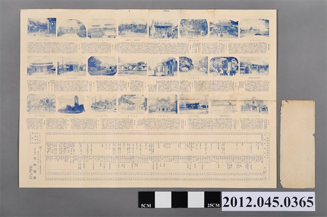 本件為地圖,有正反面資訊。正面為地圖,繪製範圍為臺南市主要市街,主要為舊城及五條港。功能分類屬市街圖,主要內容為街道、街廓、建成區、主要機關、學校、商號、預定道路、鐵路、城牆等資訊。1919年以後臺南市區劃分町目,本圖已標注當時的町名與丁目名,但無町目界線,部分建築(如州廳、監獄、臺南病院)清楚描繪。附圖為安平街全圖。無經緯線,地圖上方指北。背面單色印刷,刊登臺南市觀光景點照片24張及「臺南市內各町道程表」。