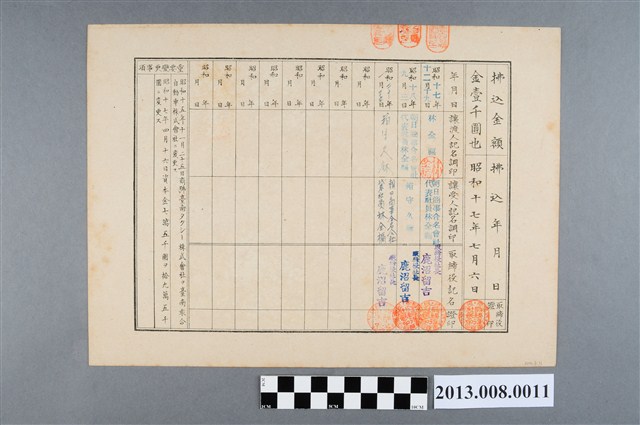 1、本件為「臺南乘合自動車株式會社」50股、共1千元的股票。該會社原為1929年設立、資本額7萬5千元的「臺南タクシー株式會社」;1940年11月更名「臺南乘合自動車株式會社」;1942年合併「臺南自動車」、「臺灣軌道」的臺南地區路線增資為19萬5千圓;即臺南客運前身,臺南客運於2003年9月間停駛、歇業。