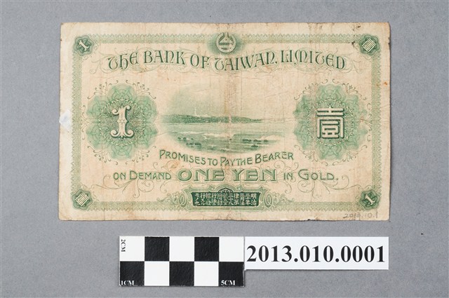 1.正面右方有臺灣神社圖樣,左方有臺灣銀行,背面為鵝鑾鼻燈塔圖樣,並有根據明治三十年(1897)三月,法律第三十八號臺灣銀行法所發行(明治三十年法律第三十八號臺灣銀行法ニ據リ發行スルモノ也)字樣。 2.正面字樣為日文字樣,背面為英文翻譯。正面下方有此券引換金
