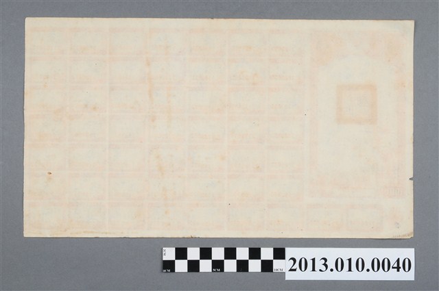 1.此文物為民國三十三年同盟勝利公債券,有債票跟息票,息票為給付利息用。本公債為一千圓面額,號碼為1190601。一千圓的息票為每張30圓,半年付息一次,本張僅支付至第15張,即1951(民國40)年6月30日為止,因為《民國三十三年同盟勝利公債條例》於1951(民國40)年11月20日連同眾多公債條例一律廢止。從此只剩下觀賞保存價值。故本張債券有原本債票及息票(16-65號,原最後給付時間應為1976年12月31日)債票上有條例摘要,並有發行日期民國33年(1944)7月1日,並有當時財政部長孔祥熙,兩位次長俞鴻鈞、顧翊羣簽名及印章。