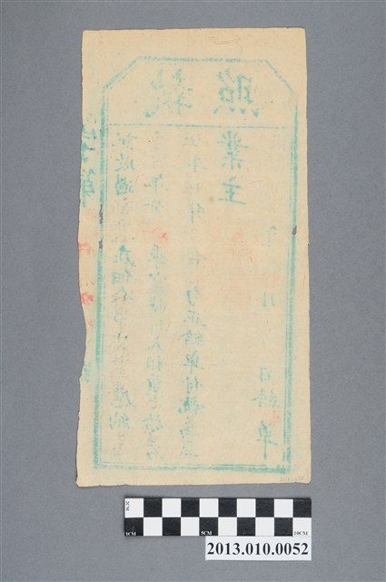 為業主林鳳開立給林緝熙(上寫由林鳳先生代林緝熙繳納)繳納大租栗之執照(證明)
