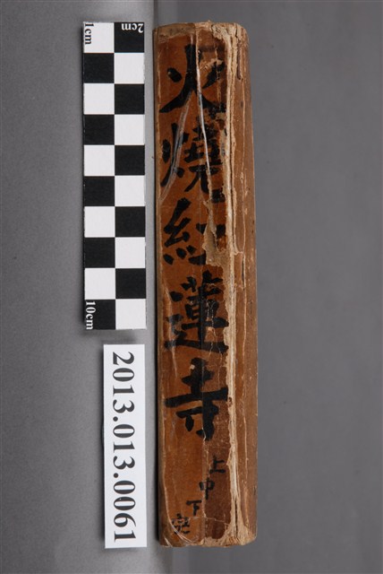 本書封面題名「火燒紅蓮寺」,副標題為「笑道人大鬪哭道人」,內容為四集單冊武俠漫畫合訂本。由台北市國際文化服務社發行,寶美書局經銷。封面及內頁印有藏書章。