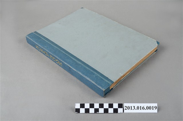 陳崧波文物之藍色書皮剪貼簿,書背燙金印「SCRAP BOOK」字樣。這本剪貼簿原本為收支記帳簿,陳崧波將記帳簿之作為報章照片、生活照剪貼與整理之用,累積許多本。這本剪貼簿除彩色照片外,貼有1936年(昭和十一年)陳崧波與黃氏怨結婚時廣邀親友的邀請卡,請函署名「主婚人 陳崧江」。陳崧江為陳崧波的哥哥,由於父親稍早過世,於是由兄長主婚。此外還貼有陳崧波在日本大學就學期間東京到臺南間的乘車船打折券,發行時間為「昭和十二年七月九日」,當時陳崧波的身分為「專門部齒科教員」,登錄「當二十七年」,意指陳當年27歲。此外,剪貼簿中貼有一張陳崧江較晚年的彩色獨照,及多張較晚拍攝的黑白照片。