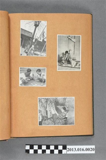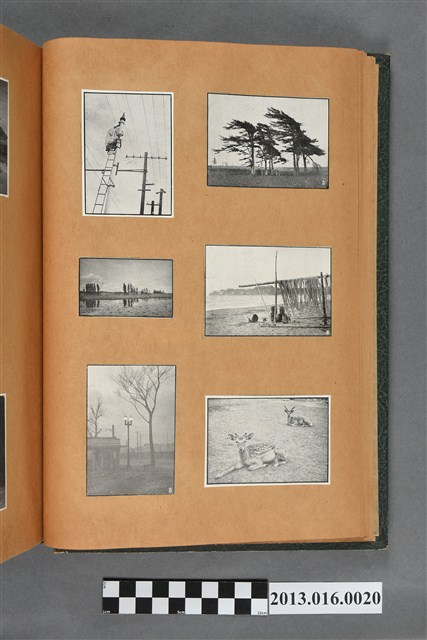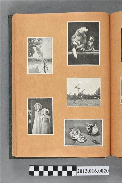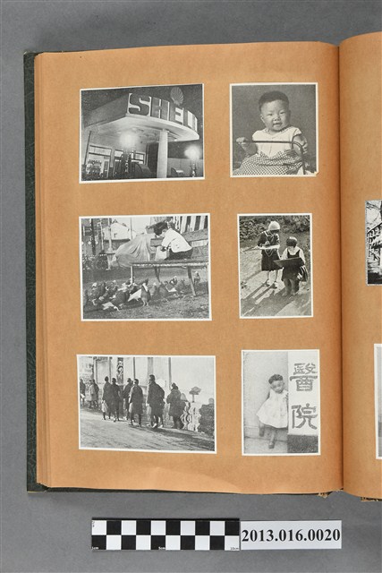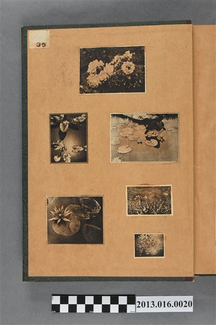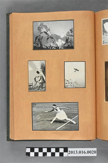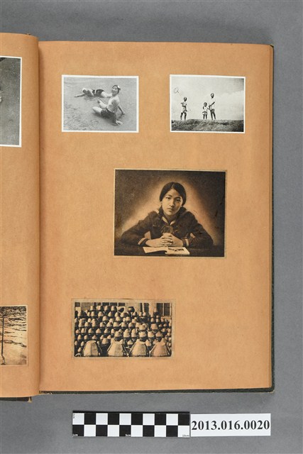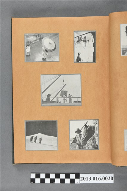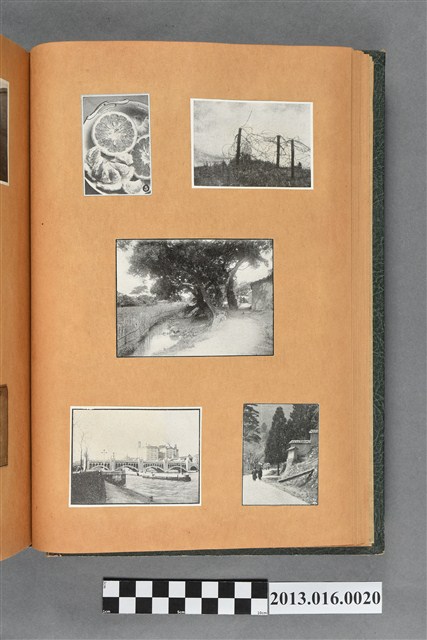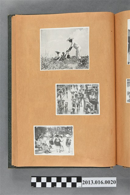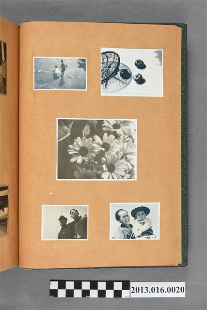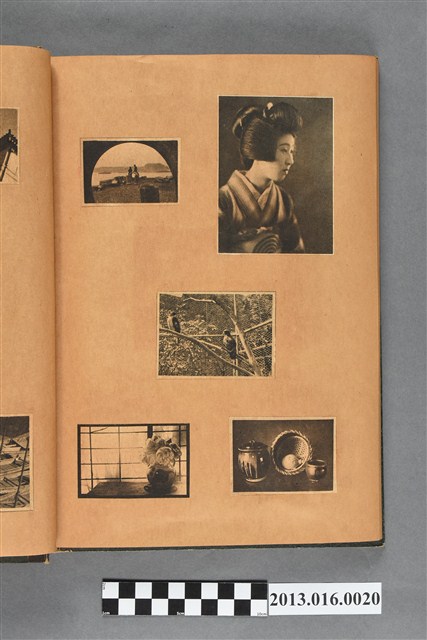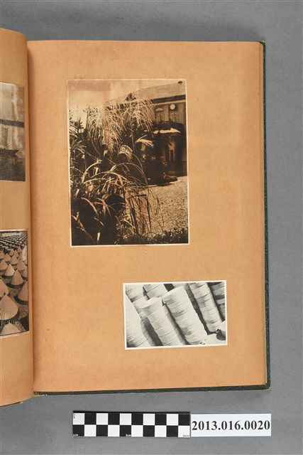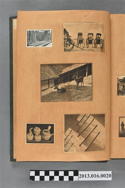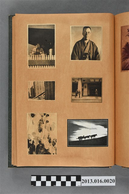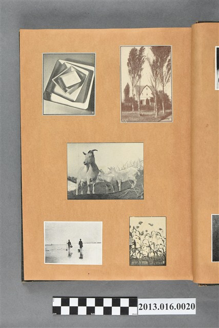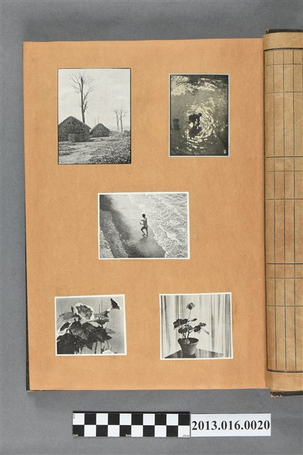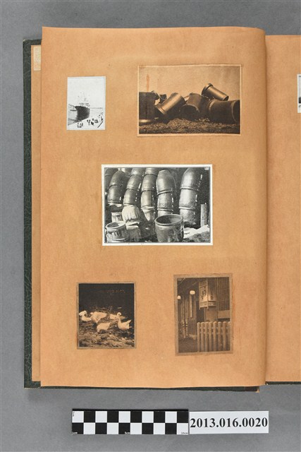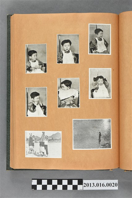 陳崧波文物之藍色書皮剪貼簿,書背燙金印「SCRAP BOOK」字樣。這本剪貼簿所貼內容主要來自出版印刷品。據捐贈者陳義鴻所述,主要是其父陳崧波將早年出版的「陳崧波寫真集」中剪貼而成,影像內容主要是日本時代至戰後初期陳崧波累積的攝影作品,其內容與物件編號「101082-0006」等50年代整理的相本有許多重疊,推測陳崧波1950年代確曾將其攝影作品集結發行,後來到1980年左右由於書籍保存不良,而將印刷品的攝影作品部分剪貼成冊,而空白部分則貼上1980年左右的照片或剪報,如一張雷根當選美國總統的剪報便貼在該剪貼簿中。