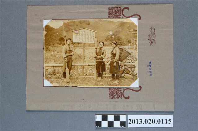 臺中岡崎寫生館邵族原住民婦女於化蕃由來告示前留影