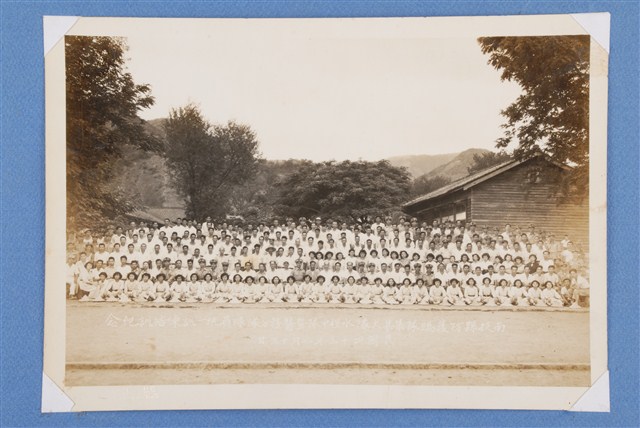 1954年(民國43年)南投縣防護總隊集集大隊水裡中隊暨醫務分隊隊員統一訓練結訓紀念團體合照。