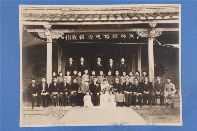 於南屯黃宅。前排右五林啟東、右六南屯黃清紅、左四草屯洪火煉。