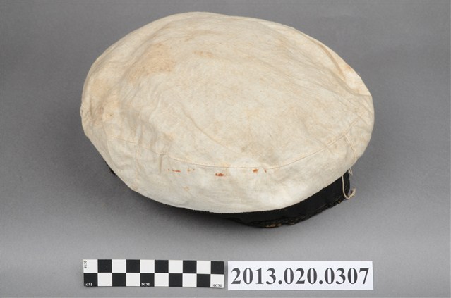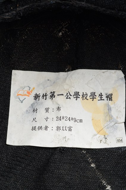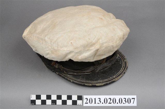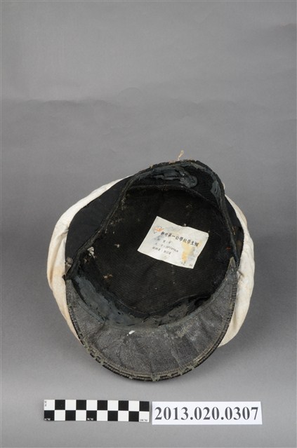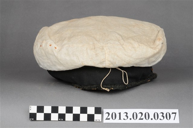 本件為日治時期新竹第一公學校(今新竹市新竹國民小學)學生帽,布質,發行時間不詳,推測應為1920年代以後(按:新竹公學校於1921年改名為新竹第一公學校)。帽面為白色布料製成,推測為夏帽,帽沿則是黑色,材質推測為皮革材質,整體形制為圓帽(日語:丸帽),帽沿上方別有校徽。