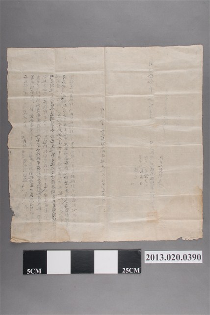 本件文物為立契人郭媽愛因乏銀費用將原屬郭媽愛、蔡阿九、蘇為承、陳日昇、傅亀所有之魚塭售出之立賣杜絕盡根契。出售價格為陸捌佛銀柒拾大員,立契時間為清同治拾叁年拾弍月。契約作中人為傅亀、顏勇,知見人妻謝氏。