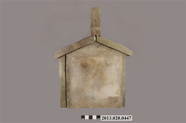 石造的小型祠廟,為早期臺灣鄉野山林間祭祀土地公常見的型式。本件文物門楣橫批「福德祠」,門面刻有「富貴平安」的吉祥圖繪,另屋脊起翹,是較為特殊之處。 為整件完整,故不分部件。