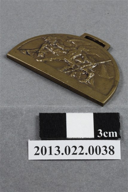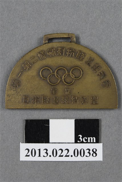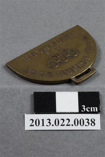 1. 第一第二候補對抗陸上競技會紀念獎牌為壓鑄法製成,呈扁平的半圓形,雙面,獎牌上方有一長形孔洞,應可作為穿繩吊掛之用。獎牌以浮雕、陽刻技法為主。獎牌整體保存良好,正反兩面有些許明顯的刮痕。獎牌正面底部留一空白,烘托出上方的浮雕圖案。圖案中有一全裸男子,右手牽著一匹背上有對巨大的翅膀的馬,左手握一長棍。一人一馬彷彿在強風中前進:馬低垂著頭抵擋,而男子重心傾向後方,伸直前腳穩住身體。整體畫面動感十足,一人一馬的姿態互相呼應這樣的動態感,十分協調。獎牌背面陽刻筆劃細緻的篆體文字,上至下、左至右為:「第一第二候補對抗陸上競技會」、「主催」、「日本陸上競技聯盟」,文字中央淺浮雕五環的奧運標誌。2. 本件作品由張昭平先生捐贈張星賢先生的體育文物,而本件作品對張星賢先生有密切的關聯和回憶。1934年自早稻田大學畢業後,張星賢先生便開始備戰1936的奧運。並以四百公尺短跑第三名的成績入選,成功成為日本的奧運代表選手,出席位於德國的1936年夏季奧運。本作指的應是西元1936年日本國內的奧運預選大會。金屬制獎牌為大量製造之產品,壓鑄法的模具可重複使用,製作過程快,且厚度、尺寸掌握度高。