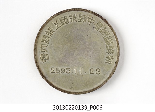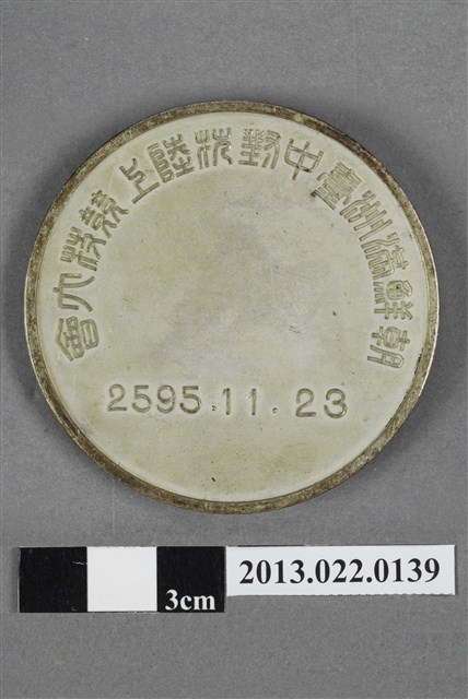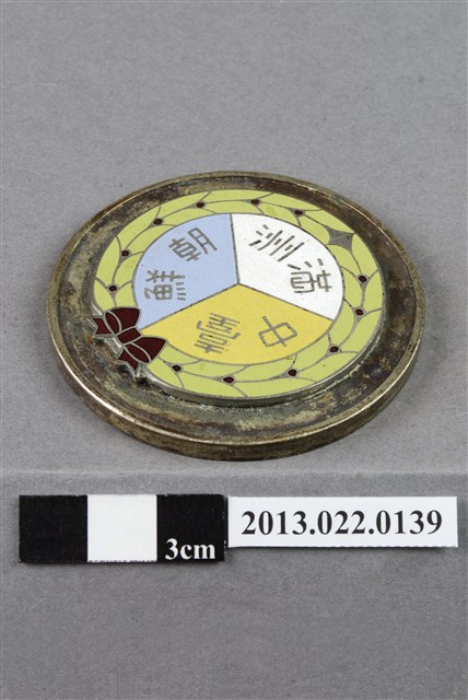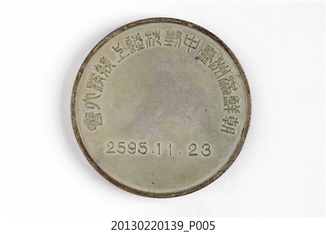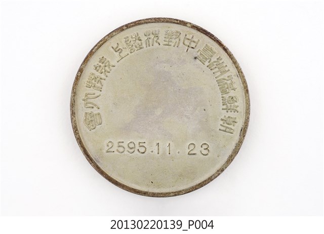 1. 朝鮮滿洲臺中對抗陸上競技大會紀念獎牌為壓鑄法製成,呈扁平的圓形,雙面,厚度適中,獎牌陽刻技法為主,並上色裝飾。獎牌正反兩面皆有明顯的鏽蝕痕跡以及黑色孔洞斑點。獎牌正面繪一圈狀桂冠,內分成三等份,分別寫上:「臺中」、「滿洲」、「朝鮮」。除文字、輪廓線留白外,其餘以綠、白、黃、藍等色填彩。獎牌背面則陽刻文字為主,上端沿弧形邊緣書:「朝鮮滿洲臺中對抗陸上競技大會」,下方水平浮雕數字:「2595.11.23」。數字指的是日本皇紀2595年,即西元1935年,為陸上競技大會的舉辦日期。2. 1932年日本政府在中國東北成立傀儡政權——滿洲國,表面上由清朝末代皇帝溥儀執政,實為日本的殖民地。本件作品的滿洲、臺中、朝鮮,皆為當時日本的殖民地。張星賢先生因在滿洲國工作,因此代表滿洲國參加三殖民地的田徑對抗賽,也代表滿洲國取得最佳成績。金屬制獎牌為大量製造之產品,壓鑄法的模具可重複使用,製作過程快,且厚度、尺寸掌握度高。