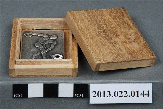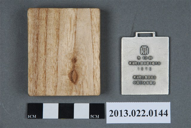 第13回東海陸上競技選手權大會紀念獎牌組含一面長方形獎牌以及收納獎牌的木盒。東海是日本區域劃分之一地帶,包含愛知縣在內,因此東海陸上競技選手權大會便是在日本愛知縣名古屋舉辦的田徑賽事,為區域型的運動賽事。第13回舉辦於1970年,如獎牌上所示。本組作品為張星賢先生舊藏,張星賢曾在日本早稻田大學留學,並參與兩次奧運,退役後提拔了許多優秀的臺灣田徑選手。而張星賢先生與名古屋中京大學的關係十分友好密切,因此也將許多臺灣選手送至中京大學遊學、訓練。本組作品可能也是因而被張星賢先生所收藏。
