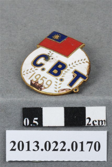 本件1959 C.B.T. 紀念章原為張星賢先生之收藏品,由其四子張昭平先生捐贈給臺灣歷史博物館。此為別針式金屬沖壓徽章,造型大致呈圓形,左上方中華民國國旗略微凸出,正面烤漆上色,圖案以一顆棒球為主體,中間有「C.B.T.」英文字樣,可能為中華民國棒球隊的英文縮寫,下方寫有年代「1959」。