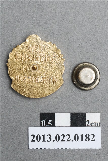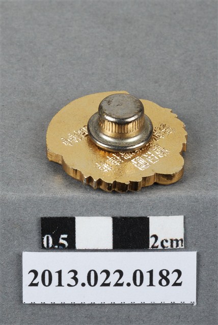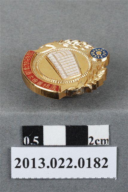 1. 本件紀念章為國民黨菲律賓總支部,為慶祝1966年黨所大樓自由大廈落成所製作,原為張星賢先生之收藏品,由其四子張昭平先生捐贈給臺灣歷史博物館。此為平頂帽扣式沖金屬壓徽章,造型大致呈圓形,正面烤漆上色,上方圖案為藍色的國民黨黨徽,中央白色建築物為自由大廈外觀,周圍環繞稻穗,下方為紅底金字由右至左排列「慶祝自由大廈落成紀念」字樣。紀念章背面呈金色,中央馬尾釘的上下分別陽刻「國民黨」、「菲律賓總支部製」與「中華民國五十五年六月」三排文字。2. 中國國民黨在菲律賓的歷史悠久,創立於1919年,起初黨部設在普智閱書報社,即現在自由大廈的所在地,二戰期間黨部被戰火燒毀,後由黨員籌資重建,於1966年落成啟用,先總統蔣公親自題名為「自由大廈」。中國國民黨駐菲律濱總支部對外稱為菲律濱國民黨文化協會,1975年中菲斷絕外交關係,國民黨由政黨轉型為社團,改名為「菲華文經總會」。